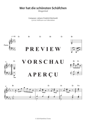 Wer hat die schönsten Schäfchen - Wiegenlied - Noten für Klavier Solo Hoffmann von Fallersleben