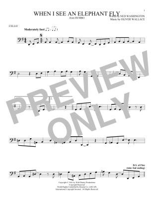 When I See An Elephant Fly (from Dumbo) - Noten für Violoncello Oliver Wallace