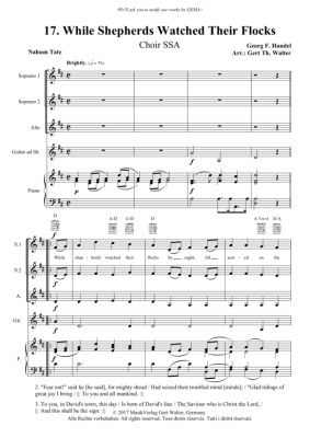 While Shepherds Watched Their Flocks - Noten für Frauenchor, Gitarre + Klavier Georg Friedrich Händel