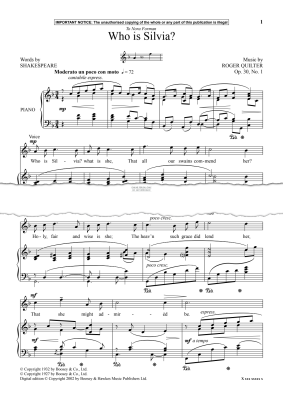 Who Is Silvia? - Noten für Gesang, Klavier Roger Quilter