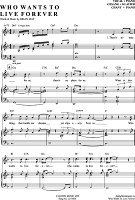 Who Wants To Live Forever - Noten für Klavier und Gesang Queen