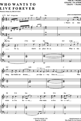 Who Wants To Live Forever - Noten für Gesang mit Klavierbegleitung Queen