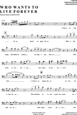 Who Wants To Live Forever - Noten für Violoncello Queen