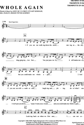 Whole Again - Noten für Trompete in B Atomic Kitten