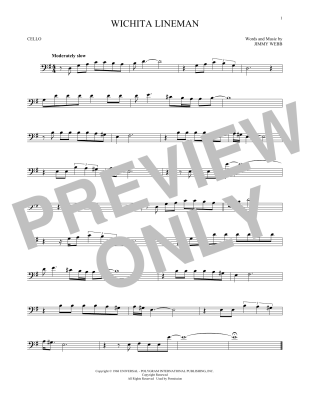 Wichita Lineman - Noten für Violoncello Glen Campbell