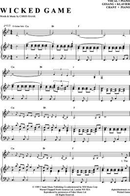 Wicked Game - Noten für Klavier und Gesang Chris Isaak