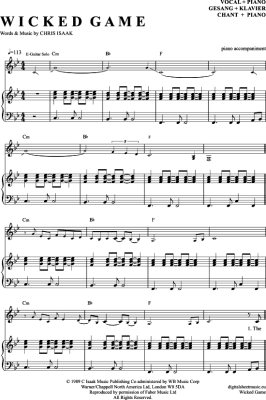 Wicked Game - Noten für Gesang mit Klavierbegleitung Chris Isaak