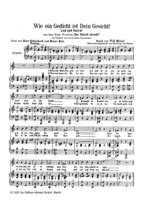 Wie ein Gedicht ist Dein Gesicht - Noten für Klavier und Gesang aus: Der Storch streikt (Film)