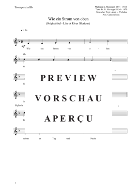 Wie ein Strom von oben (Like A River Glorious) ein Kirchenlied als Trompeten Solo oder Übungsstück mit einer Textstrophe für den fortgeschrittenen Anfänger bestens geeignet.