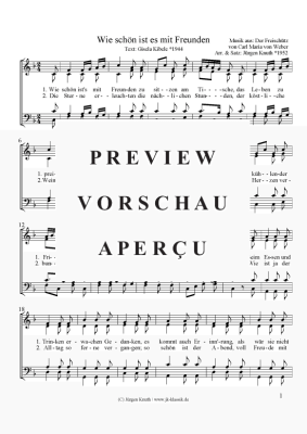 Wie schön ist es mit Freunden - Noten für Gemischter Chor Carl Maria von Weber (1786-1826) / Satz: Jürgen Knuth*1952