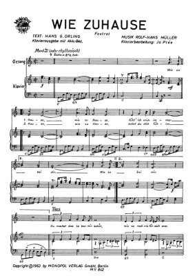 Wie Zuhause - Noten für Klavier und Gesang Foxtrott