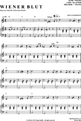Wiener Blut - Noten für Gesang mit Klavierbegleitung Johann Strauß (Sohn)
