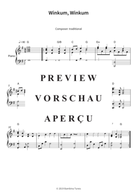 Dieses Notenheft enthält die Originalnoten zum Kinderlied "Winkum, Winkum" für Klavier. Leichter Schwierigkeitsgrad in G-Dur.