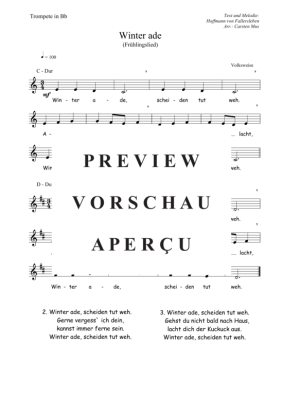 Winter Ade (Frühlingslied) - Noten für Trompete in B Solo C zu D-Dur Traditional