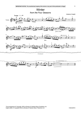 Winter (from 'The Four Seasons') - Noten für Keyboard, Violine Antonio Vivaldi