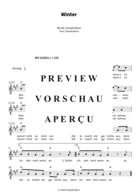 Winter - Noten für Gesang und Akkorde Leadsheet Yvaine