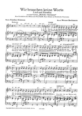 Wir brauchen keine Worte - Noten für Klavier und Gesang aus: Ball der Nationen (Film)