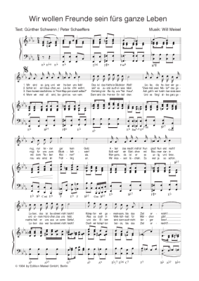 Wir wollen Freunde sein fürs ganze Leben - Noten für Klavier und Gesang Eric Helgar