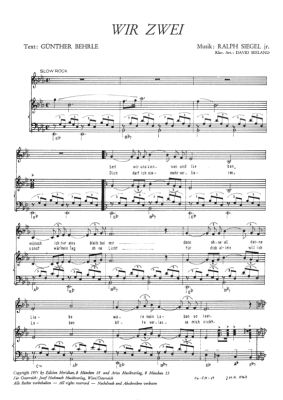 Wir Zwei - Noten für Klavier und Gesang Hardy Cramer