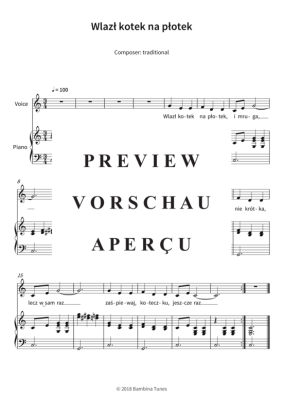 Dieses Werk enthält die Originalnoten des polnischen Kinderlieds "Wlaz? kotek na p?otek", einfach arrangiert in C-Dur für Klavier und Gesang.