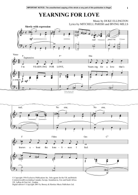 Yearning For Love - Noten für Gesang, Klavier Duke Ellington
