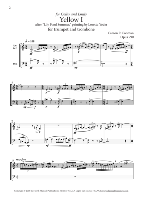 Yellow I (2008) for trumpet and trombone was written for Colby Cooman and Emily Baker.