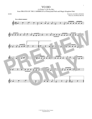 Yo Ho (A Pirate's Life For Me) - Noten für Horn George Bruns