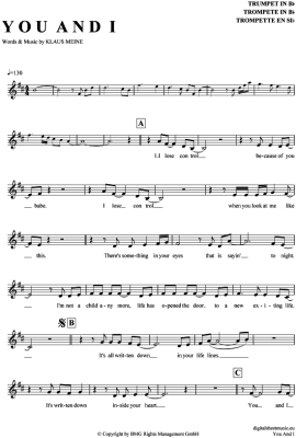 You and I - Noten für Trompete in B Scorpions