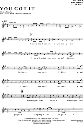 You Got It - Noten für Blockflöte Roy Orbison