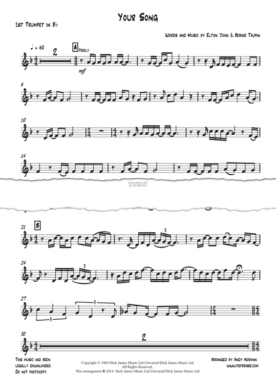Your Song (Blechbläserquintett, Quintett, Mittelschwer)