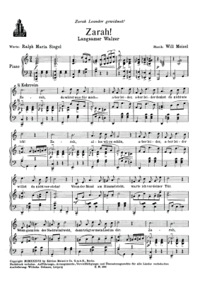 Zarah - Noten für Klavier und Gesang Langsamer Walzer