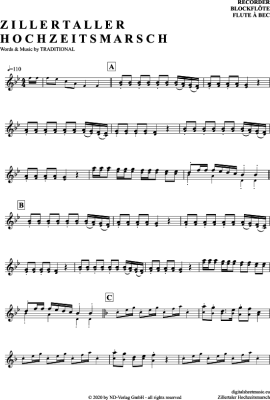 Zillertaler Hochzeitsmarsch - Noten für Blockflöte Traditional