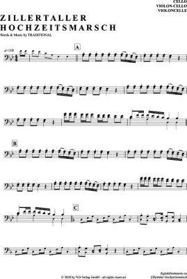 Zillertaler Hochzeitsmarsch - Noten für Violon-Cello Traditional