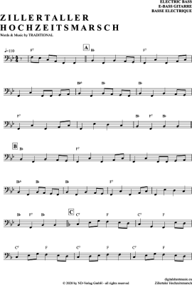 Zillertaler Hochzeitsmarsch - Noten für E-Bass Traditional