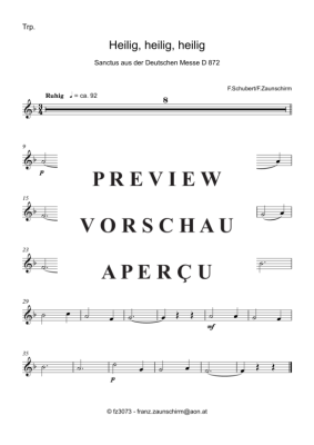Zum Sanctus (Heilig, heilig) - Noten für Trompete in B Solo + Klavier-Playback Schubert/Zaunschirm