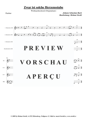 Zwar ist solche Herzensstube - Noten für Klarinettenquartett Johann Sebastian Bach