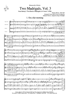 Zwei Madrigale Vol. 3 - Noten für 2xTrompete in B/C, Horn in F, Posaune Thomas Morley